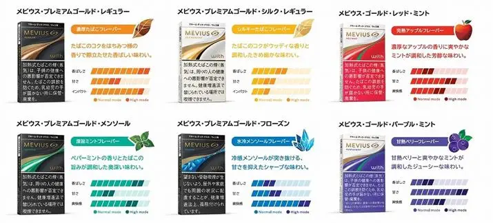 전용 스틱은 레귤러 2종 + 캡슐형 멘솔 3종 + 캡슐형 플레이버 멘솔 3종의 총 8종류. 레귤러 외에는 모두 캡슐 탑재