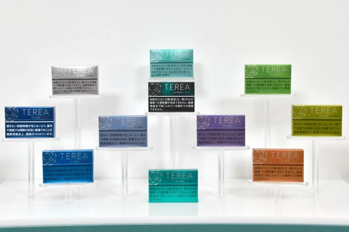 「아이코스 이르마」 시리즈 전용 담배 스틱 「테리아」. 사진은 출시 라인업 11종으로, 2025년 5월 15일 기준 총 24종을 갖추고 있다