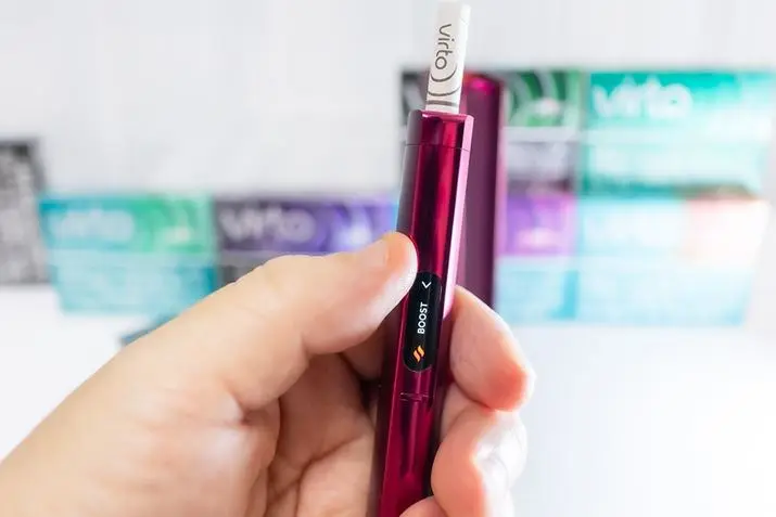 따라서 본 모델은 전용 스틱 'virto(비르토)'를 사용해야 한다. '스틱 씰'로 선단 부분을 막고 있지만, 핀형 쿼츠가 그곳을 뚫고 내부 담배 잎에 직접 꽂히는 점이 흥미롭다. 또한 가열 온도는 기존과 마찬가지로 고온(부스트 모드)과 저온(스탠다드 모드)을 전환하여 사용한다.