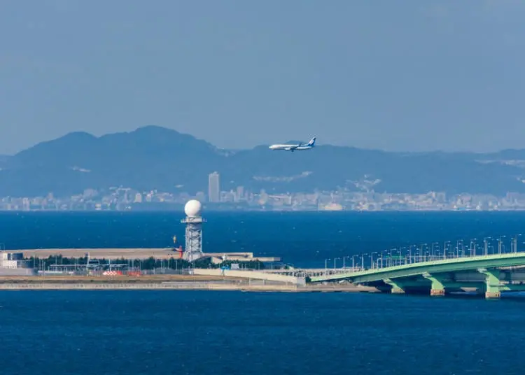 간사이로의 관문인 간사이 국제공항은 세계 최초의 완전 인공 섬 해상 공항입니다. 5층 스카이 데크에는 옥상 공원이 있으며, 오사카 만과 기이 반도 등 360° 파노라마 뷰를 즐길 수 있습니다. 간사이 공항역에서는 남해 전철의 항구 급행이나 특급 라피트로 난바역까지 직행할 수 있습니다.