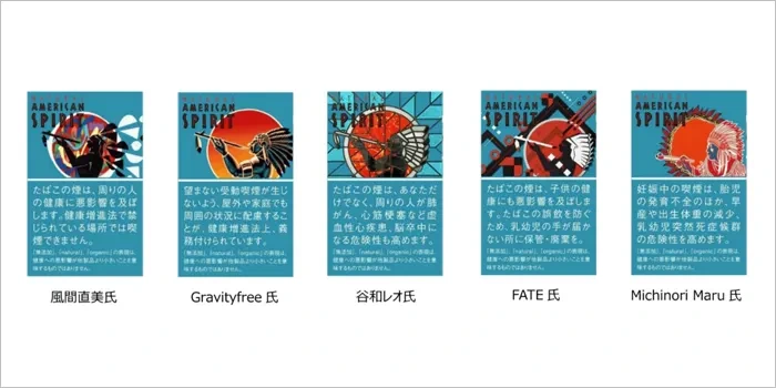 디자인이 뛰어난 담배의 한정 패키지 4종 중 하나는 내추럴 아메리칸 스피릿의 디자이너즈 디자인입니다.