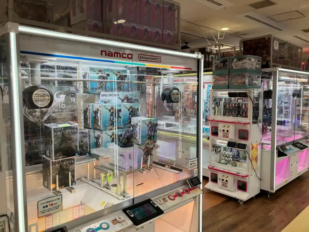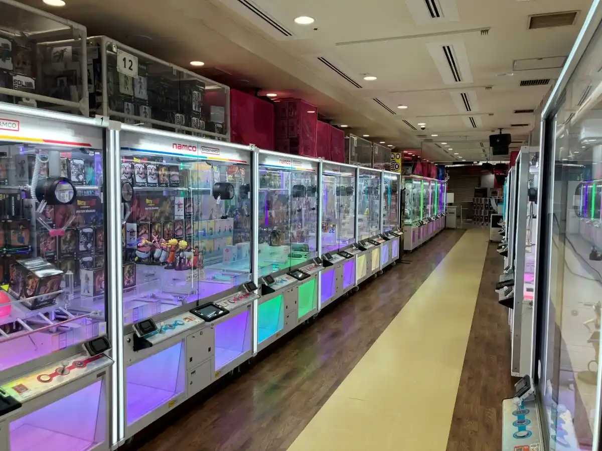 지하 2층부터 지상 6층까지 총 8층 규모의 대형 점포로, 크레인 게임 코너는 1층과 2층에 위치해 있습니다. 1층에는 인기 캐릭터의 인형과 마스코트, 2층에는 인기 만화·애니메이션·게임의 피규어를 중심으로 한 크레인 게임 기기가 설치되어 있습니다. 인기 있는 크레인 게임 기종으로는 2단식 크레인 게임 기종 '미니차 시리즈'를 비롯해 소형 크레인 게임, 3개의 암으로 상품을 잡는 것이 간편하고 목표가 명확한 'UFO 트리플 시리즈'가 인기입니다.
