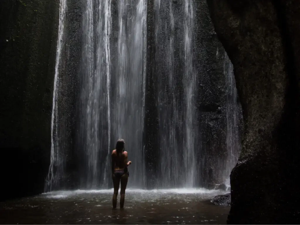 다음으로 소개하는 발리의 4월을 만끽할 수 있는 추천 명소는 '투카드 추풍 폭포'입니다. 발리 중심부에서 차로 약 1시간 반 정도 떨어진 곳에 위치한 비경의 폭포입니다. 울창한 절벽 꼭대기에서 쏟아지는 햇살이 매우 환상적입니다. 햇살과 계곡의 대비가 어우러져 폭포가 더욱 신비로운 분위기를 연출하고 있습니다.