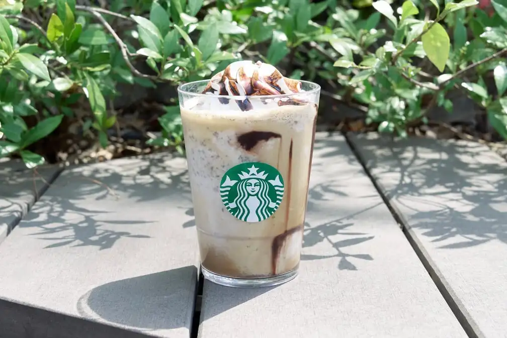 커스터마이징: 파우더를 더 많이, 화이트 모카 시럽 변경, 초콜릿 또는 캐러멜 소스 추가 (595엔)