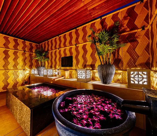 전실에 분사식 욕조가 완비되어 있고, 입욕제가 풍부하게 갖추어져 있는 것도 포인트. 또한 모든 객실에 ReFa 샤워 헤드가 도입되어 두 사람이 편안한 목욕 시간을 즐길 수 있습니다.