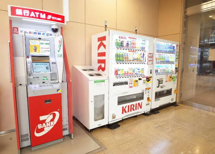 대기 공간 내에는 세븐 은행의 ATM이 있습니다. 또한, 패밀리마트 매장 내에는 우체국 은행의 ATM도 있습니다.