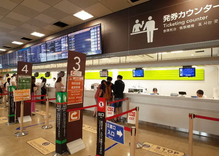 티켓은 인터넷 예약, 바스타 신주쿠 내 발권 카운터, 자동 발권기 등에서 구매한 후 탑승합니다. 바스타 신주쿠는 아침 9시, 저녁 4시경이 혼잡의 피크 시간대입니다. 발권 카운터와 자동 발권기 모두 시간대에 따라 매우 혼잡해져 긴 줄이 생길 수 있습니다.
