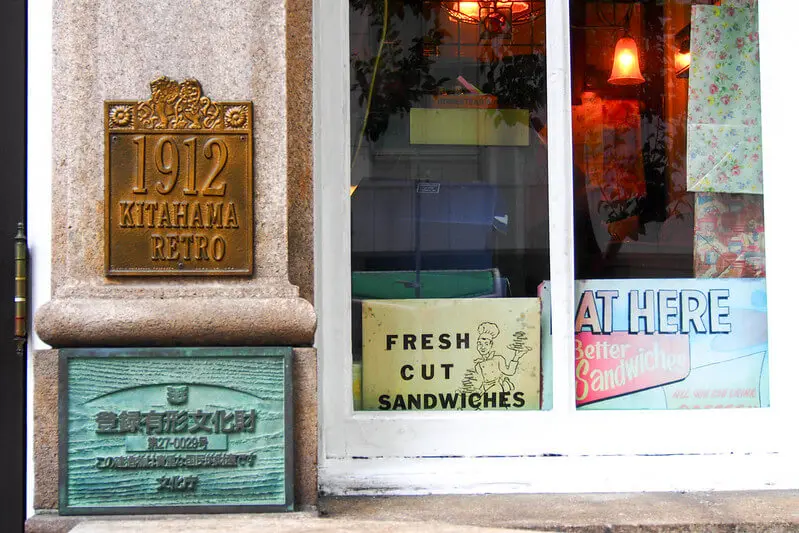 레트로한 분위기로 인기 있는 키타하마 레트로 빌딩은 메이지 45년(1912년)에 건설되었으며, 영국 글래스고 파의 영향을 받은 건물로서 국가 등록 유형문화재로 지정되어 있습니다.