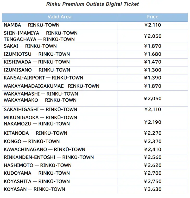 아래의 디지털 티켓을 구입하면, 출발 역에서부터 린쿠타운역까지의 할인 왕복 승차권과 함께 1000엔분의 쇼핑권이 세트로 구성된 티켓을 구입할 수 있습니다.