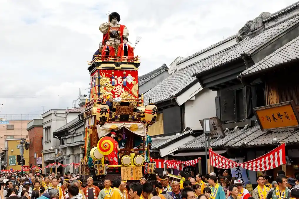 가와고에 마츠리는 가와고에시에 있는 히카와 신사가 매년 10월 14일에 개최하는 '예대제'를 근원으로 하고, 그 직후에 열리는 '신행제(神幸祭)'와 '가마 행사(제례)'를 총칭하는 마츠리입니다. 국가지정 중요무형민속문화재로 지정되어 유네스코 무형문화유산에 등재되어 있습니다. 그중에서도 '수레 행사(제례)는 꼭 봐야 할 볼거리입니다. 정교한 인형을 실은 화려하고 호화로운 수레가 도심을 순회하며 여러 대의 수레가 지나가는 모습은 박력 만점입니다.