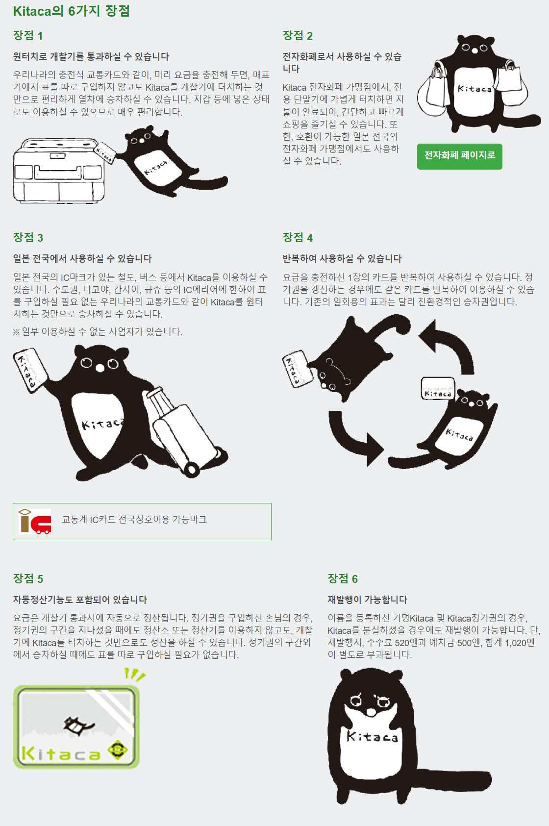 아래 표에 Kitaca에 대해 간단히 정리하였습니다.