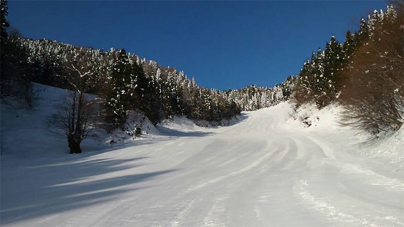 미야자키현이라는 남국에 거대한 스키장을 만드는 것은 역시 어려워, 마련된 코스는 고작 2개뿐입니다. 둘 다 출발 지점은 산정 부이며, 그중 하나인 '다이나믹 코스'는 650m의 상급자용 코스입니다. 최대 경사도는 30도로 그리 가파르지 않아 중급자도 도전 가능한 수준입니다. 다른 하나인 '파라다이스 코스'는 두 코스가 역 L자형으로 연결된 1,000m 코스입니다. 출발 지점은 초보자도 불안감을 느끼지 않을 만큼 완만하지만, 점차 난이도가 올라가 상급자용으로 변해갑니다.