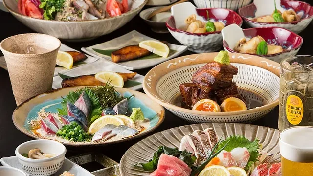 저녁 접대나 특별한 날의 저녁 회식에 추천하는 것은 '가부토 오모테나시 코스'(10,000엔)입니다. '제철 전채 모둠'을 시작으로 시장 직송의 '오늘의 생선회', '구이', '조림' 등 그날의 입하량에 따라 내용이 바뀌지만, 가장 맛있는 것을 가장 맛있는 타이밍에 제공해 줍니다. 총 10가지 메뉴에 2시간 음료 무제한이 포함되어 있어 느긋하게 즐길 수 있습니다. 맛있는 지역 술과 함께 맛볼 수 있고, 방문할 때마다 다른 요리도 등장하기 때문에 재방문하는 사람도 많습니다.