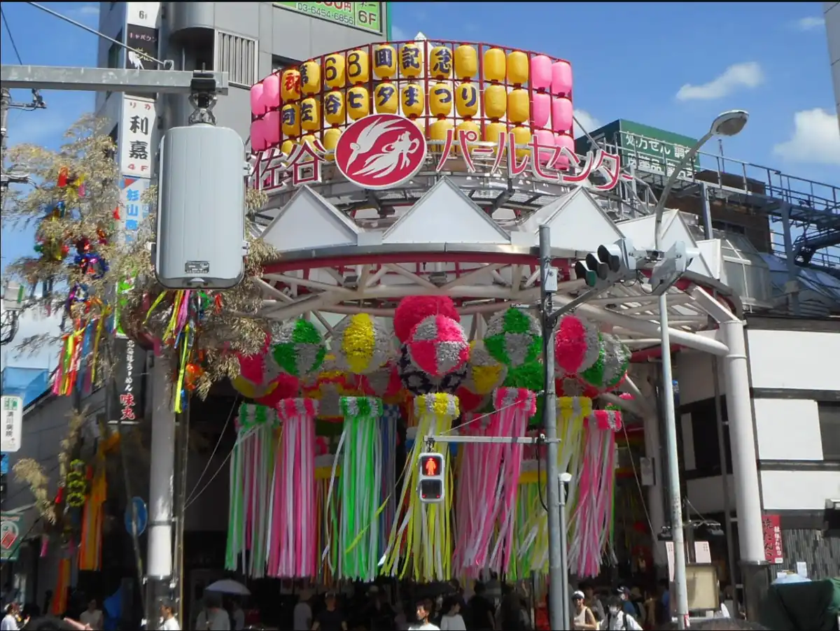 아사야 타나바타 축제의 볼거리는 상점가에 걸린 수많은 '하리보테'입니다. '하리보테'는 대나무나 나무로 만든 틀에 종이를 붙여 만드는 인형입니다.