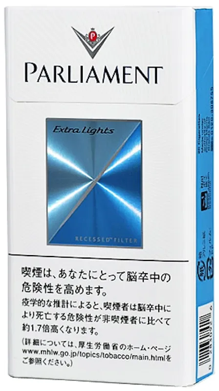 세계적 시장 점유율을 자랑하는 Philip Morris Parliament 시리즈의 Extra Light입니다. 메탈릭 블루 패키지가 특징입니다. 타르 3mg, 니코틴 0.2mg으로 가벼운 흡연감이 특징이며, 담배 초보자들에게도 추천됩니다.