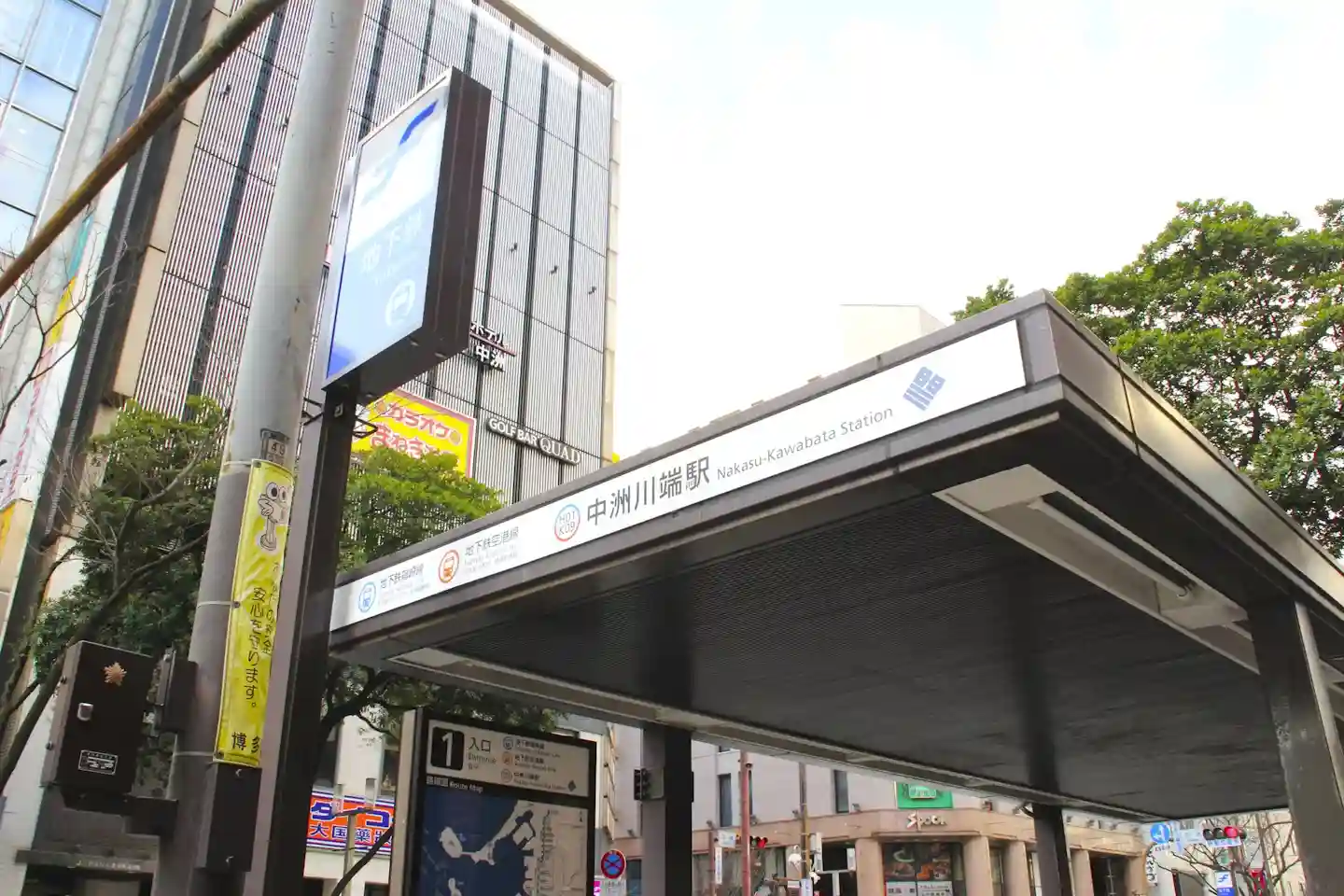 하카타역에서 나카스까지는 후쿠오카시영 지하철 공항선을 이용하면 편리합니다. 소요시간은 5분 정도밖에 걸리지 않아 편하게 이동할 수 있습니다. 하카타역에서 나카스카와바타역까지 승차하여 6번 출구에서 지상으로 나오면 나카스 중심부에 도착합니다.